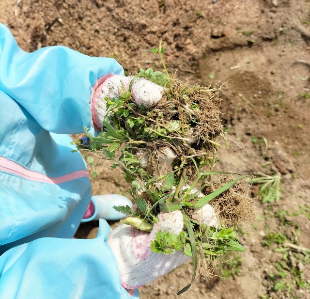 雑草も、春先の生え始めのころは、根っこも小さく雑草が抜きやすく、夏にかけての雑草の勢いを抑えることができます。
