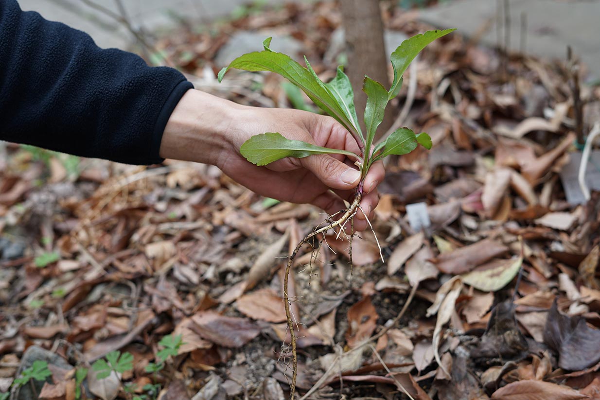 抜いた後に草花と雑草を区別するほうほうとして、根っこの形で判断する方法もあります。