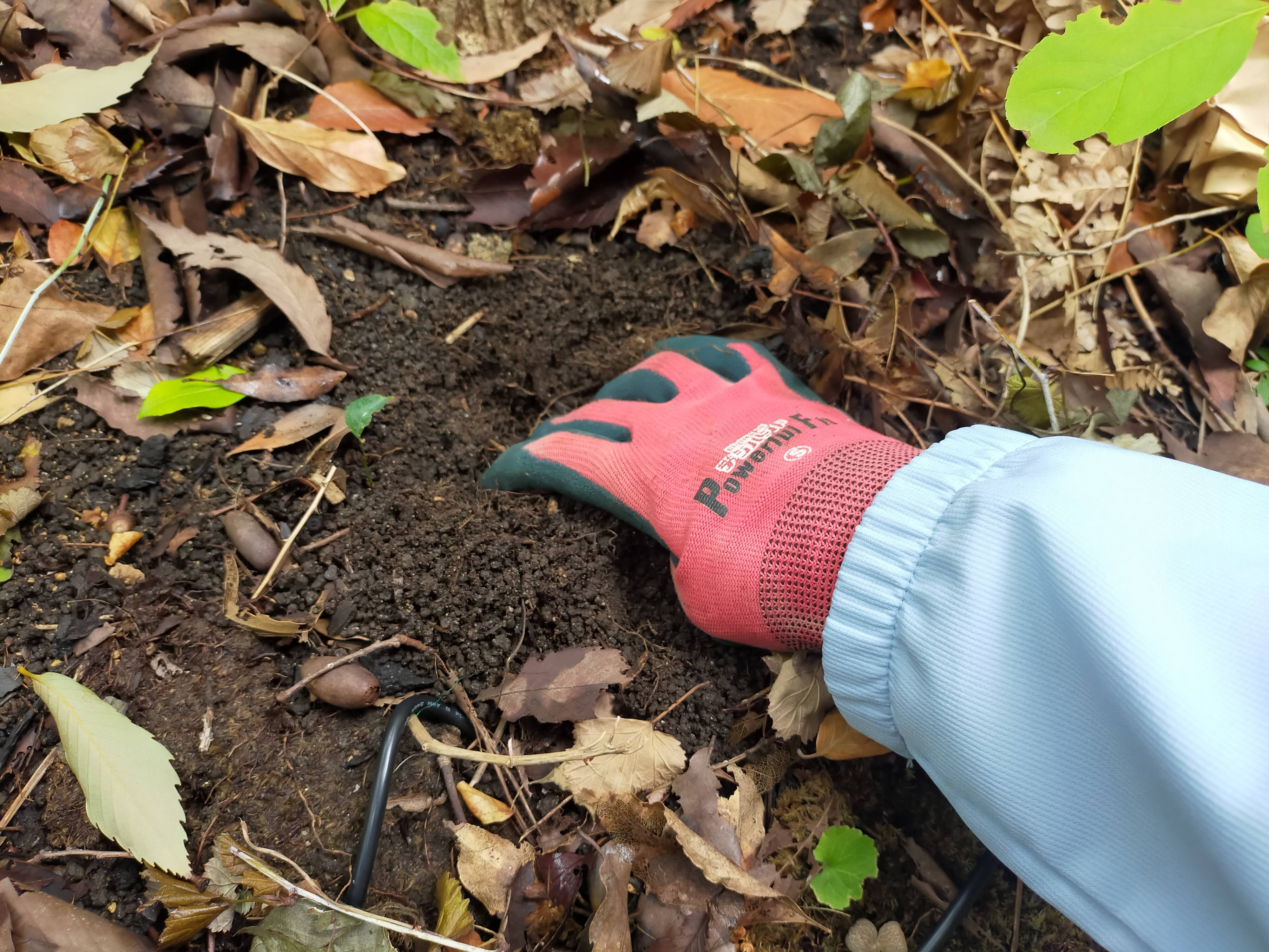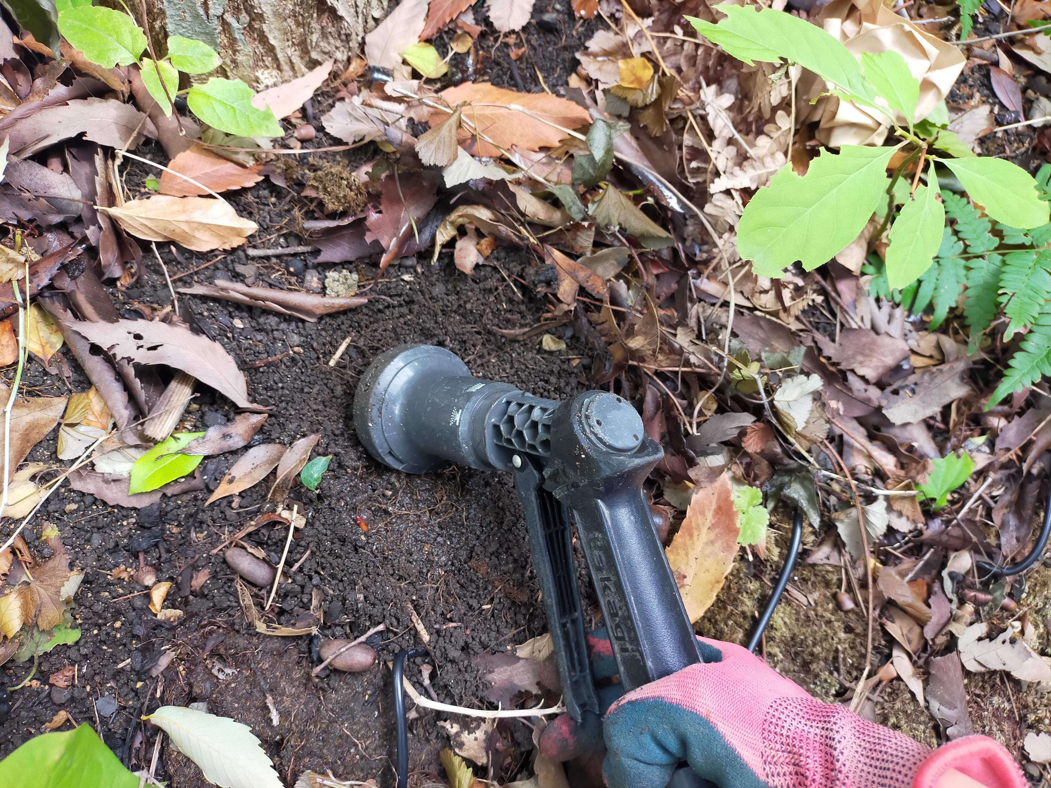 土の中まで水が入っていないようでしたら、表面の土や落ち葉がある場合は一時的にどけて、少し土を掘って水を染み込ませましょう。