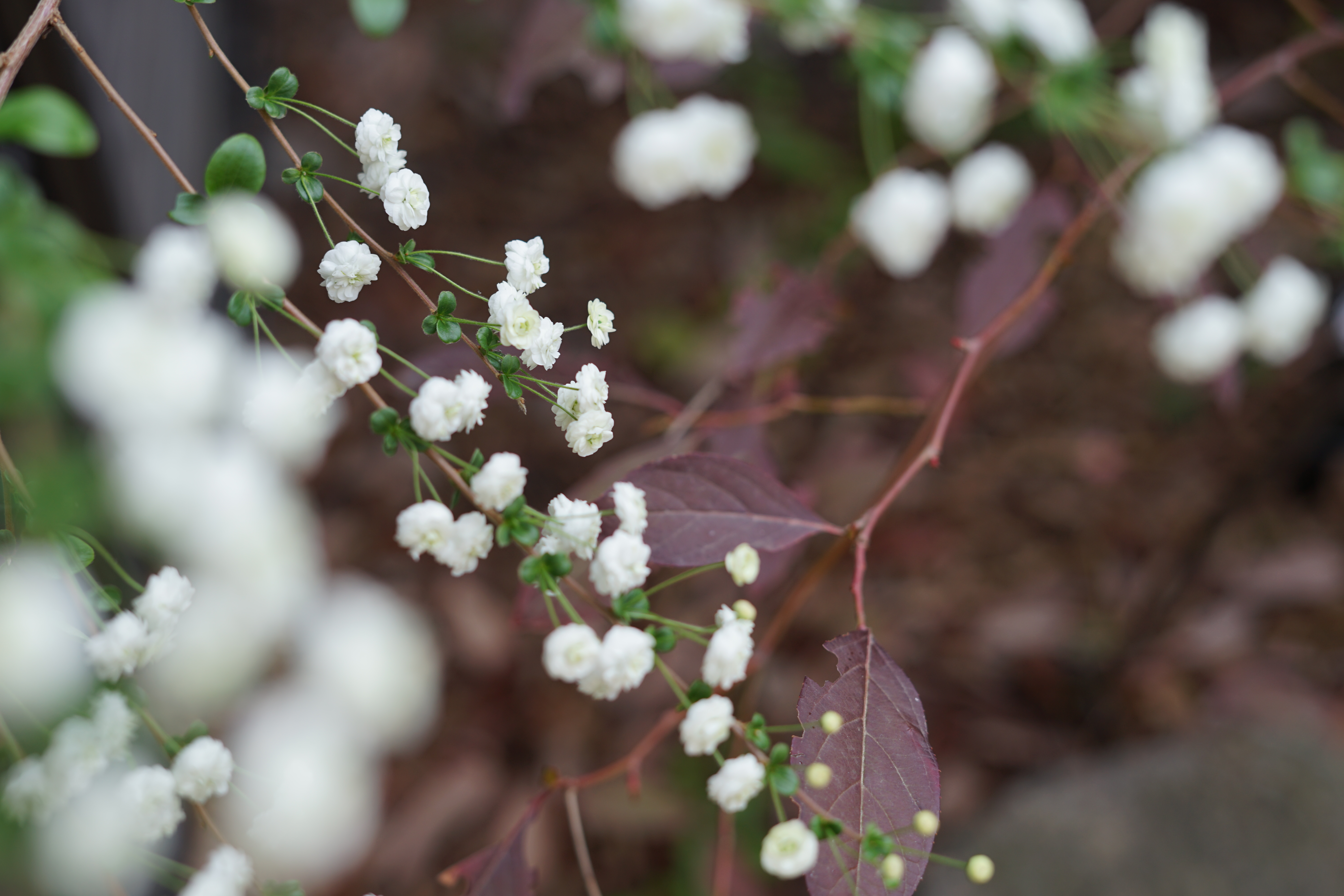 ユキヤナギのように白い小花がたくさん咲くシジミバナ